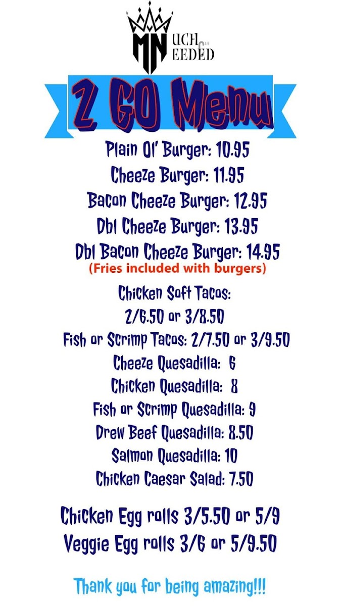 If you're in the Austin area and looking for a cozy spot to unwind, the Much Needed Cafe Llc Menu offers a delightful selection that will hit the spot. Located at 10601 N Lamar Blvd, this cafe serves up an array of comfort foods and unique drinks that cater to all tastes. Whether you're in the mood for a hearty breakfast, a light lunch, or a sweet treat, there’s something for everyone here. From freshly brewed coffee to delicious pastries and savory sandwiches, every dish is crafted with care. The laid-back vibe makes it the perfect place to kick back and enjoy your meal, whether you’re here for a quick bite or a leisurely hangout with friends. The menu changes seasonally, so you'll always find new flavors to explore, but rest assured, everything is made with the freshest ingredients and a lot of love.